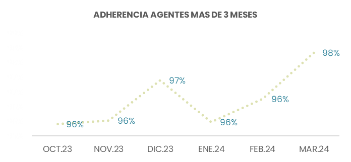 Se definieron métricas para reconocer a los mejores ejecutivos y establecer incentivos que han permitido mejorar la adherencia a los turnos, calidad y TMO de las llamadas, realizando coaching y transparentando esta información de medición y puntuación en la plataforma.