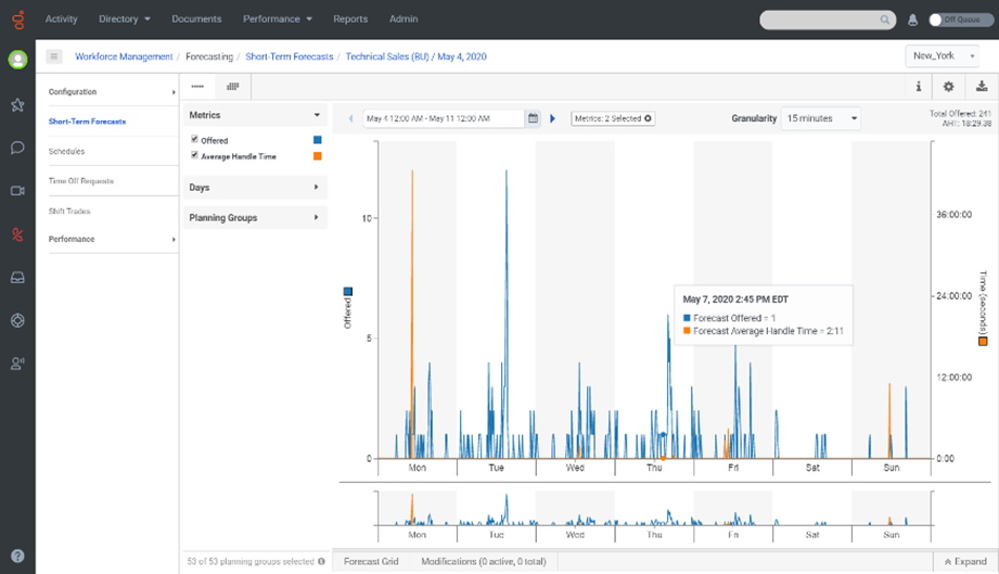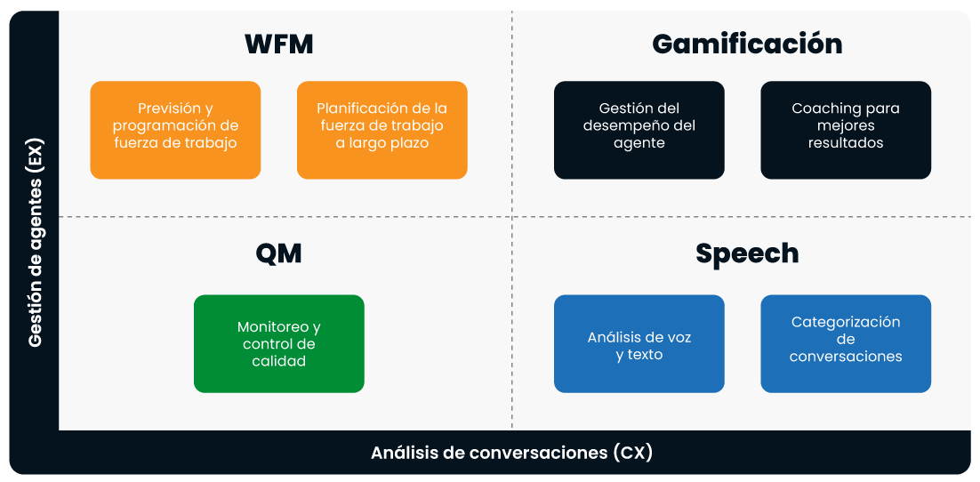 Workforce Management (WFM) es una funcionalidad que se encuentra dentro del paquete de soluciones entregadas por WEM dentro de Genesys Cloud (además de otros como Gamificación, Speech Analytics y Quality Manager). En ese sentido, WFM permite realizar la previsión y programación de la fuerza de trabajo, y por lo mismo, planifica el trabajo de los agentes de atención a largo plazo.