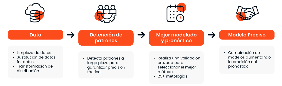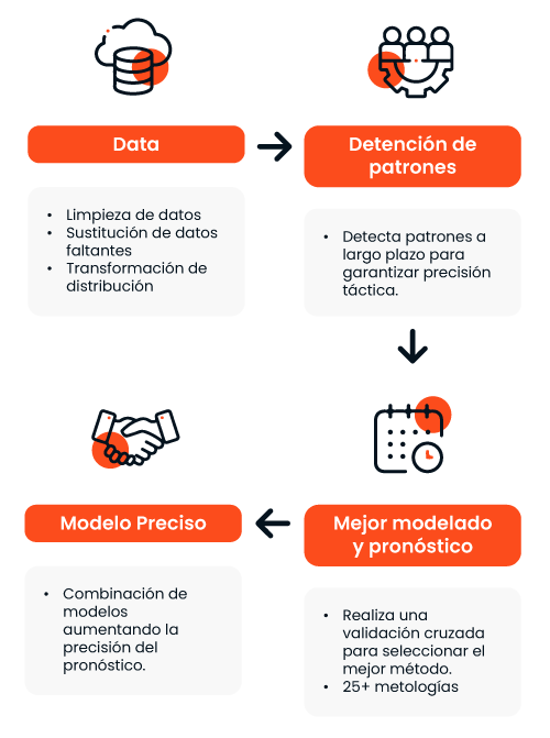 Los pronósticos ayudan a planificar cuantas interacciones esperará en las próximas semanas, proporcionando datos y métricas como patrón, volumen y tiempo promedio de manejo, de modo de poder analizar cuántos agentes se necesitan para contestar las interacciones.
